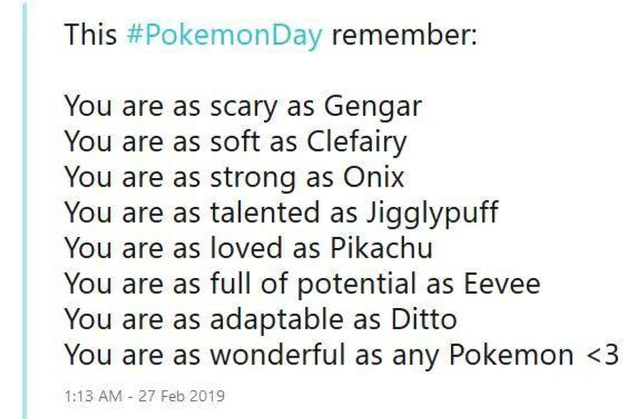 You are as wonderful as any Pokemon <3